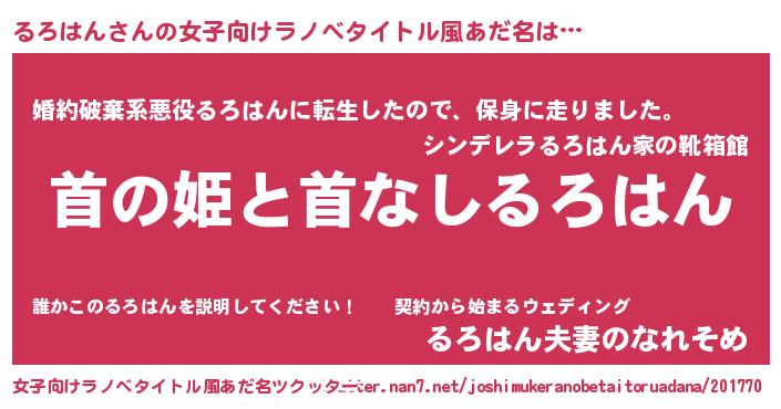 男性向けラノベタイトル風あだ名 | 『はたらくるろはんさま!』 |