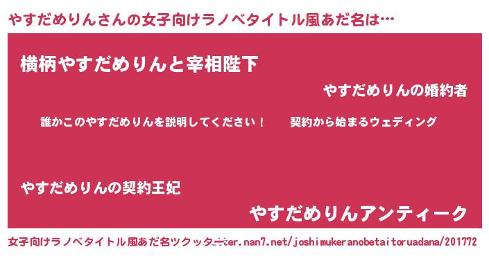 | 男性向けラノベタイトル風あだ名 | 『ヤスダメリンアートオンライン』 |