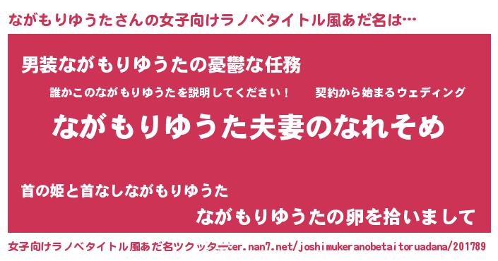 | 男性向けラノベタイトル風あだ名 | 『おまえをオタクにしてやるから、俺をながもりゆうたにしてくれ! 』 |