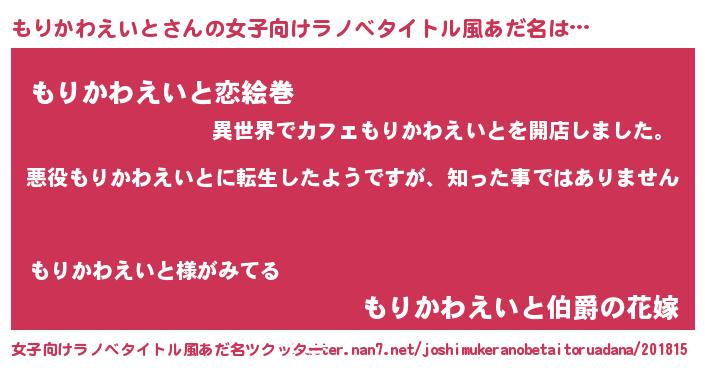 | 胡散臭い通販商品みたいなあだ名 | 『あなたにだけ特別に提供する限定10本のレアな日本酒…その名も「もりかわえいと」』 |