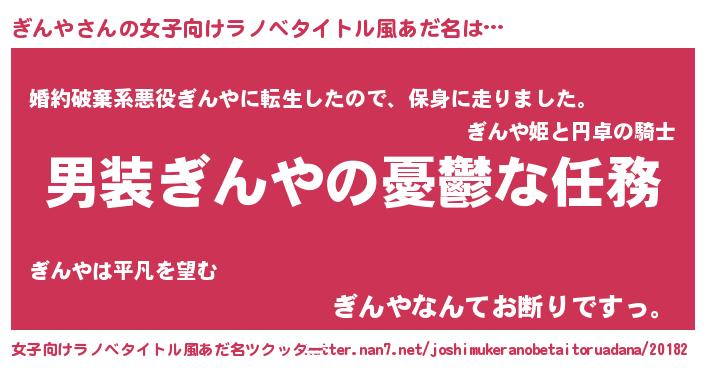 | 意味不明あだ名 | 『ニラ科ぎんや属』『自称ぎんや』 |