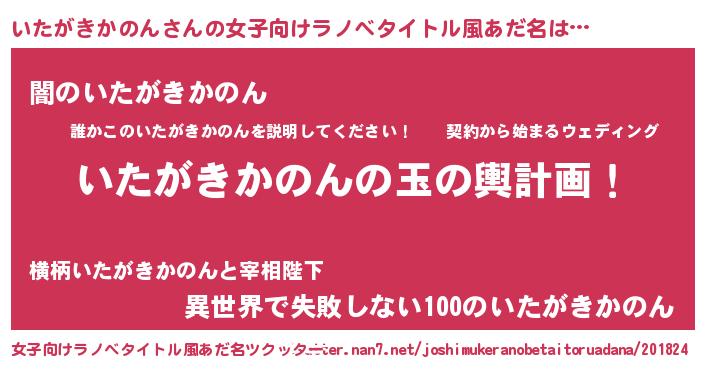 | 男性向けラノベタイトル風あだ名 | 『転生したらいたがきかのんだった件』 |