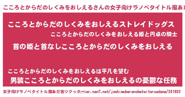 | 男性向けラノベタイトル風あだ名 | 『はたらくこころとからだのしくみをおしえるさま!』 |
