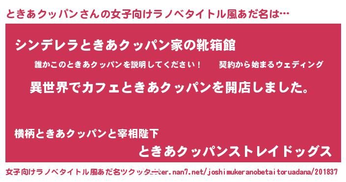 | 胡散臭い通販商品みたいなあだ名 | 『前代未聞の水素水…その名も「ときあクッパン」』 |