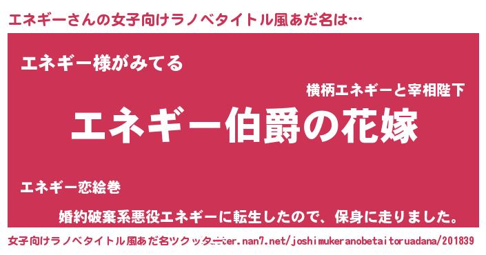 | 意味不明あだ名 | 『エネギーフォーエバー』 |