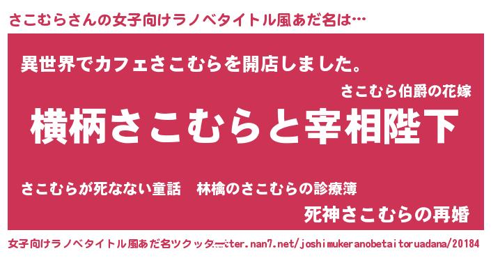 | ヒーロー風カッコイイあだ名 | 『ネオサコムラ』『天空の使者さこむら』 |