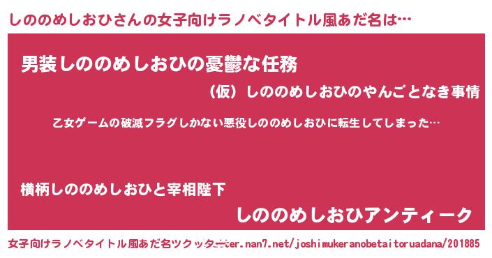 | 意味不明あだ名 | 『住所不定無職しののめしおひ(11歳)』 |