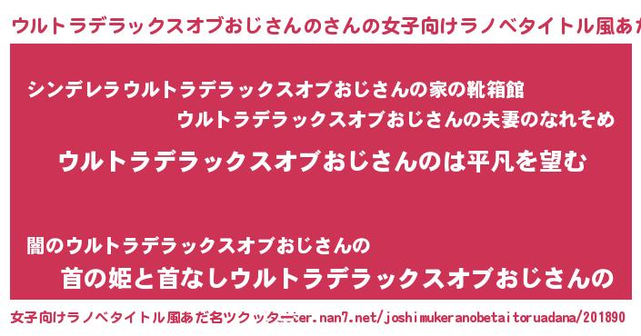| 男性向けラノベタイトル風あだ名 | 『ダンジョンにウルトラデラックスオブおじさんのを求めるのは間違っているだろうか』 |