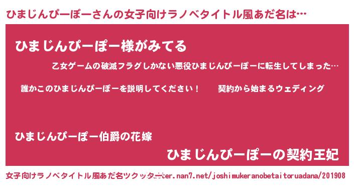 ひまじんぴーぽーさんの女子向けラノベタイトル風あだ名