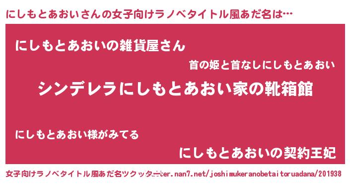 | 男性向けラノベタイトル風あだ名 | 『冴えないにしもとあおいの育てかた』 |