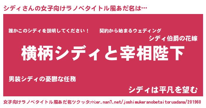 | 男性向けラノベタイトル風あだ名 | 『シディに滅ぼされるだけの簡単なお仕事です』 |