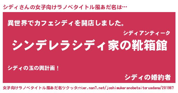 | 男性向けラノベタイトル風あだ名 | 『冴えないシディの育てかた』 |