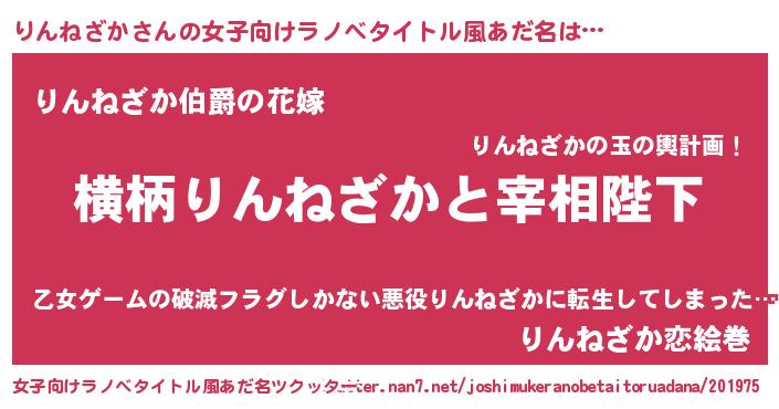 | 男性向けラノベタイトル風あだ名 | 『りんねざかに滅ぼされるだけの簡単なお仕事です』 |