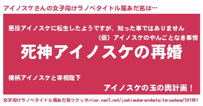| 男性向けラノベタイトル風あだ名 | 『ノーゲーム・ノーアイノスケ』 |