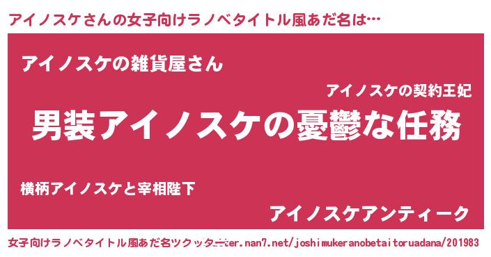 | 男性向けラノベタイトル風あだ名 | 『冴えないアイノスケの育てかた』 |