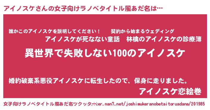 | 胡散臭い通販商品みたいなあだ名 | 『絶対に幸福をもたらす健康食品…その名も「アイノスケ」』 |