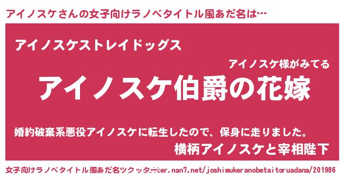 | ファンタジー風あだ名 | 『エターナルアイノスケー』『ゼアイトゥ』 |