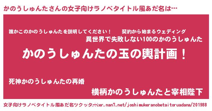 | 胡散臭い通販商品みたいなあだ名 | 『億万長者になれる霊験あらたかなお札…その名も「かのうしゅんた」』 |