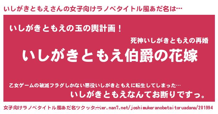 | ファンタジー風あだ名 | 『エターナルイシガキトモエー』 |