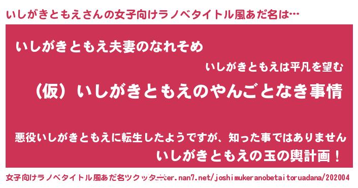 | 男性向けラノベタイトル風あだ名 | 『いしがきともえの憂鬱』 |