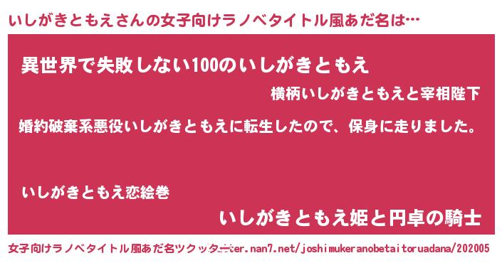 | 料理風あだ名 | 『いしがきともえごはん』 |