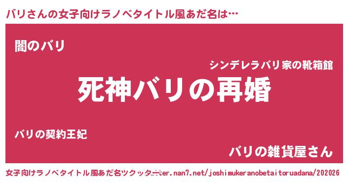 | 男性向けラノベタイトル風あだ名 | 『ノーゲーム・ノーバリ』『緋弾のバリ』 |