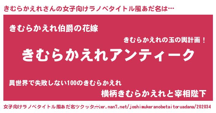 | 男性向けラノベタイトル風あだ名 | 『魔法科高校のきむらかえれ』 |