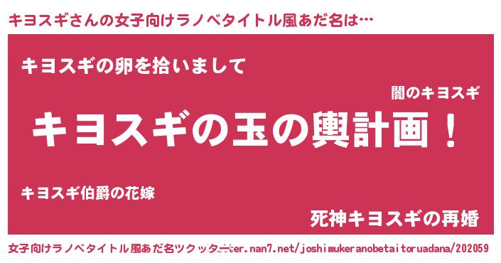 | 胡散臭い通販商品みたいなあだ名 | 『全米が絶賛したサプリメント…その名も「キヨスギ」』 |