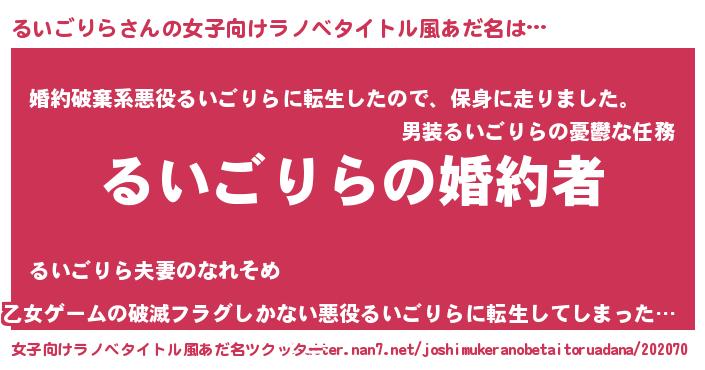 | 胡散臭い通販商品みたいなあだ名 | 『運命の人と巡り会える高級そうな皿…その名も「るいごりら」』 |