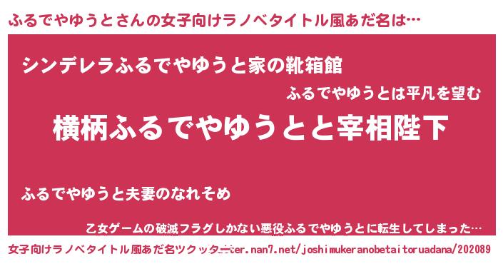 | 男性向けラノベタイトル風あだ名 | 『ふるでやゆうとに滅ぼされるだけの簡単なお仕事です』 |