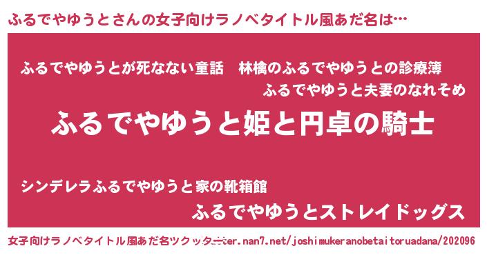 | 男性向けラノベタイトル風あだ名 | 『フルデヤユウトアートオンライン』 |