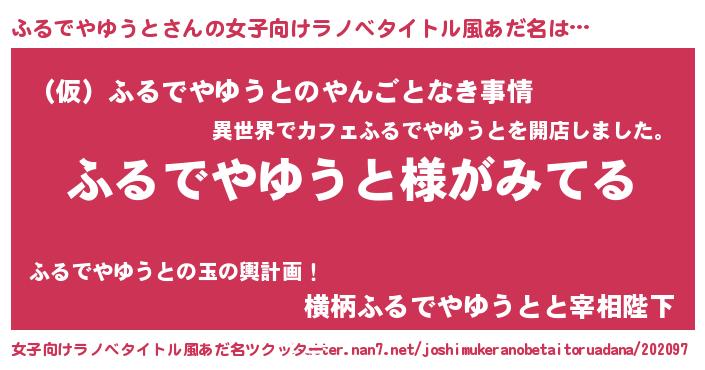 | 男性向けラノベタイトル風あだ名 | 『ふるでやゆうとの嫁は女の子じゃないと思った?』 |
