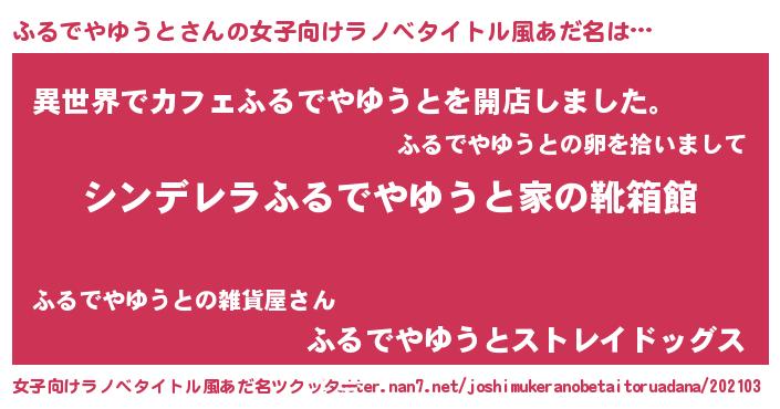 | 男性向けラノベタイトル風あだ名 | 『緋弾のフルデヤユウト』 |