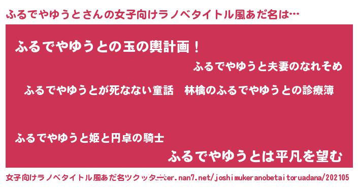 | 男性向けラノベタイトル風あだ名 | 『魔弾の王とふるでやゆうと』 |