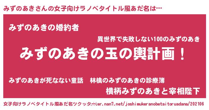 | 男性向けラノベタイトル風あだ名 | 『転生したらみずのあきだった件』 |