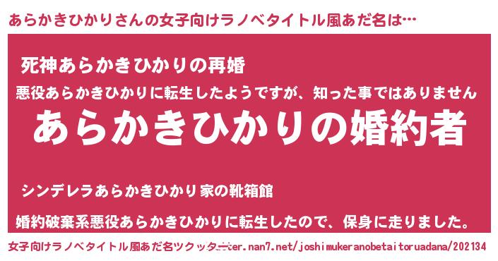 | 胡散臭い通販商品みたいなあだ名 | 『運命の人と巡り会える高級そうな絵画…その名も「あらかきひかり」』 |