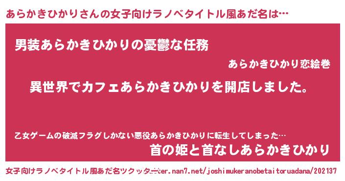 | ヒーロー風カッコイイあだ名 | 『ネオアラカキヒカリ』『仮面アラダー』 |