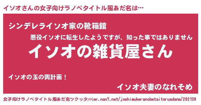 | 男性向けラノベタイトル風あだ名 | 『やはりイソオの青春ラブコメはまちがっている 』 |