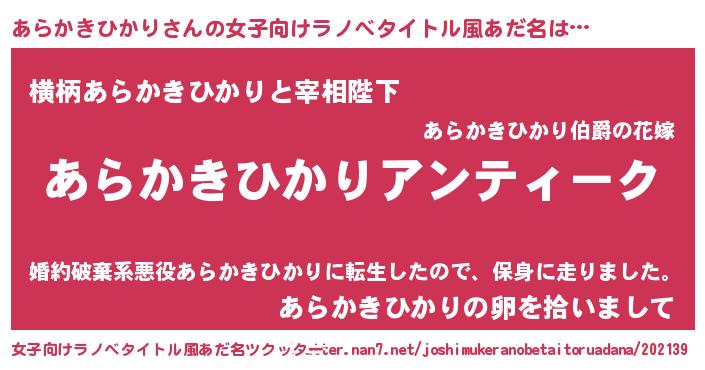 | 意味不明あだ名 | 『自称あらかきひかり』 |