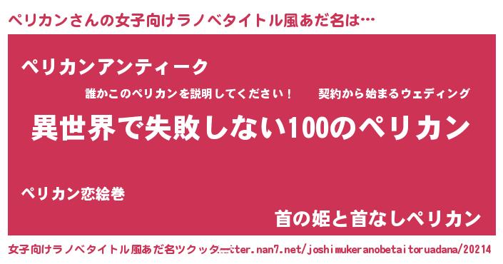 | 男性向けラノベタイトル風あだ名 | 『ペリカンという概念が存在しない退屈な世界 』 |