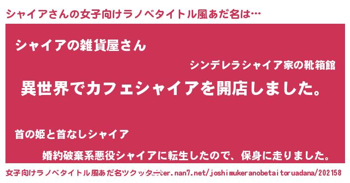 | ヒーロー風カッコイイあだ名 | 『ネオシャイア』『ウルトラシャイアマン』 |