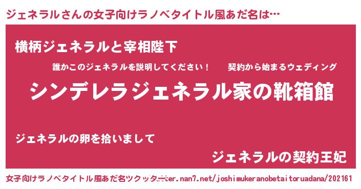 | 男性向けラノベタイトル風あだ名 | 『冴えないジェネラルの育てかた』 |