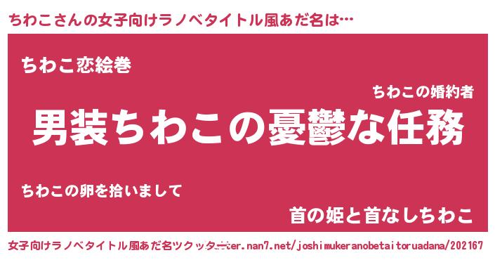 | 男性向けラノベタイトル風あだ名 | 『冴えないちわこの育てかた』 |
