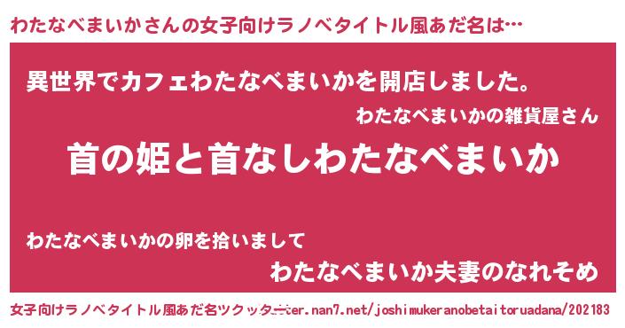 | 男性向けラノベタイトル風あだ名 | 『はたらくわたなべまいかさま!』 |
