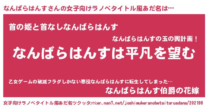 | 胡散臭い通販商品みたいなあだ名 | 『信頼と実績のネックレス…その名も「なんばらはんす」』 |