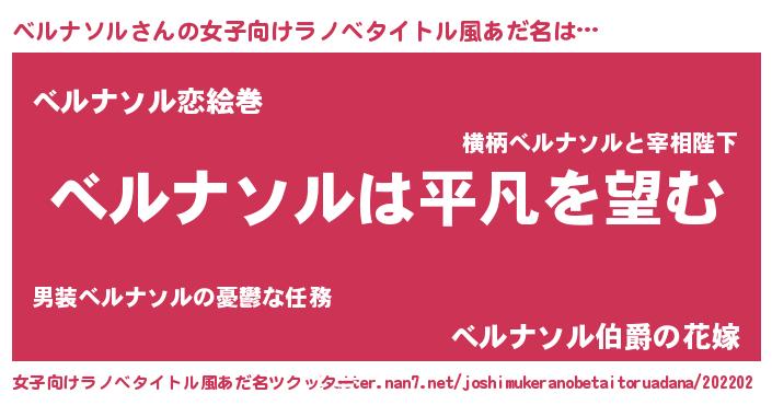 | 男性向けラノベタイトル風あだ名 | 『ダンジョンにべルナソルを求めるのは間違っているだろうか』 |