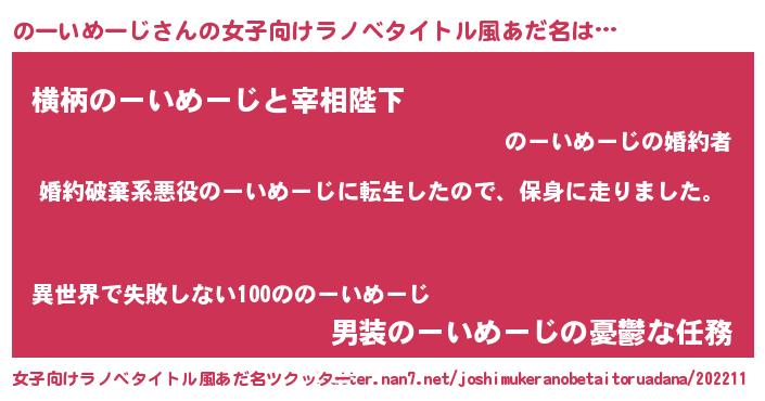 | 男性向けラノベタイトル風あだ名 | 『ノーイメージスレイヤー』 |