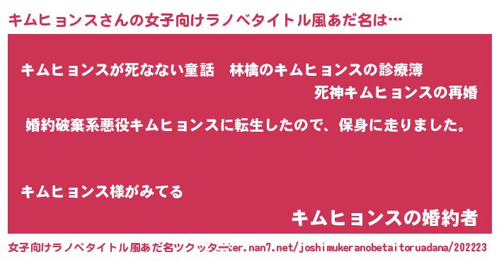 | 男性向けラノベタイトル風あだ名 | 『キムヒョンススレイヤー』 |