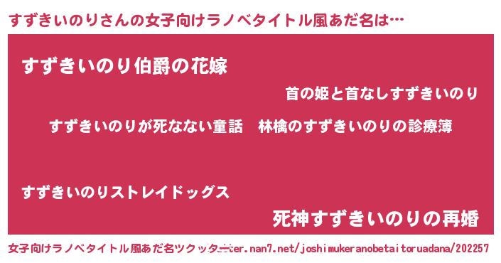 | 意味不明あだ名 | 『住所不定無職すずきいのり(93歳)』 |