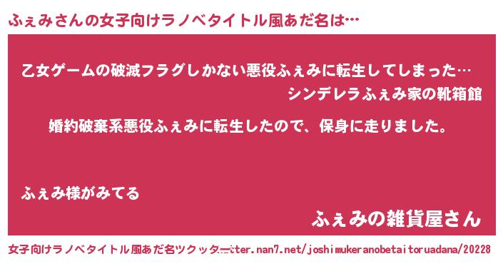 | 男性向けラノベタイトル風あだ名 | 『フェミスレイヤー』『緋弾のフェミ』 |